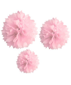 3 Pompons en papier rose 20, 30 et 40 cm