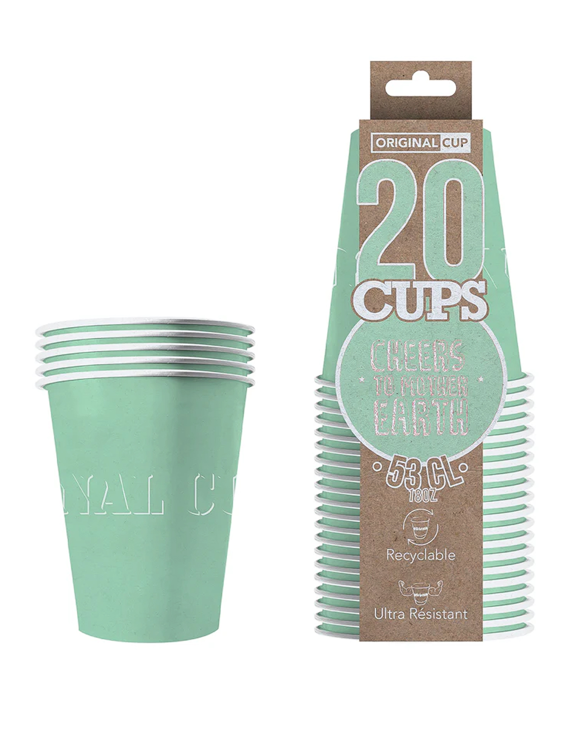 20 Gobelets américains carton recyclable menthe 53 cl