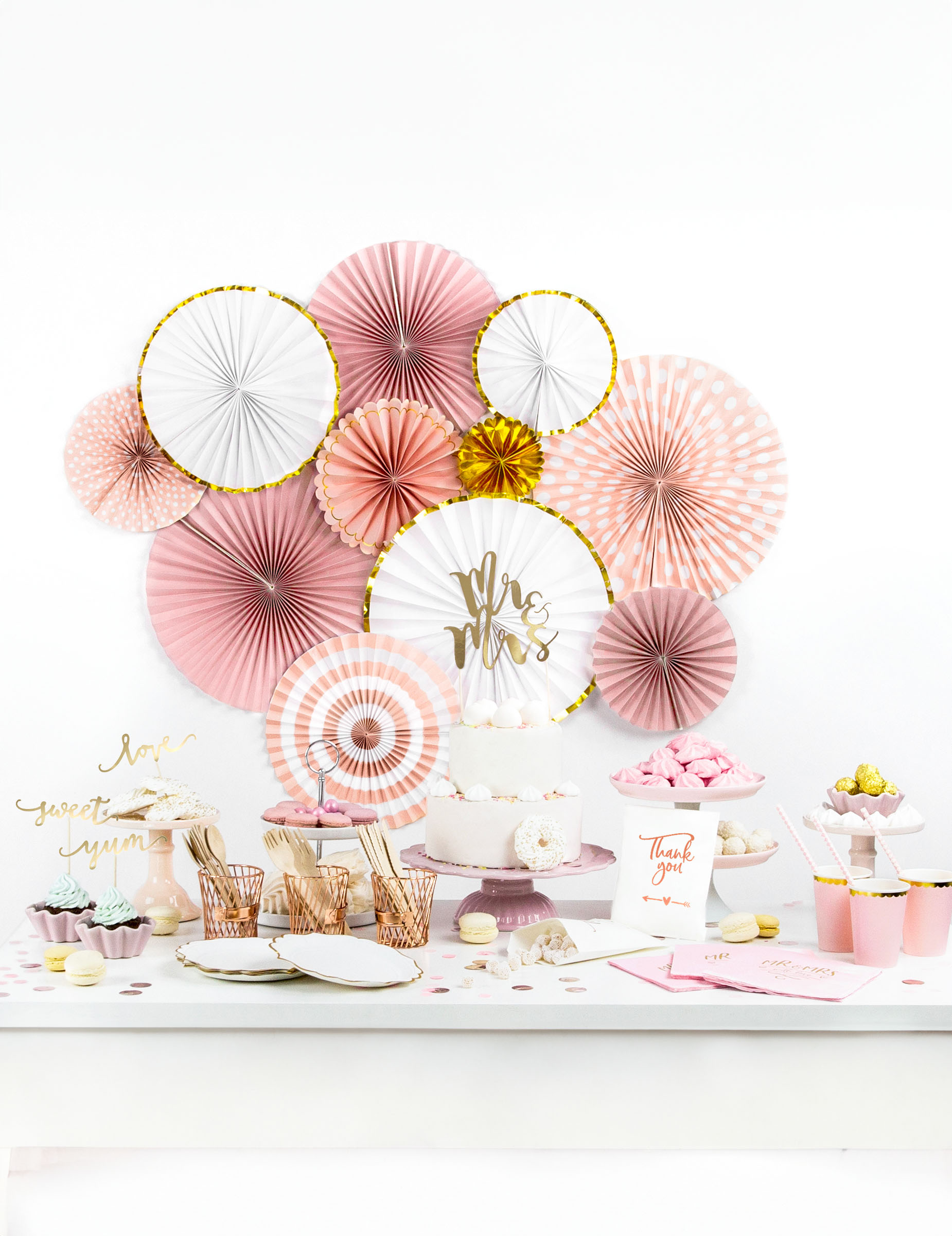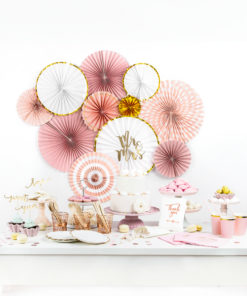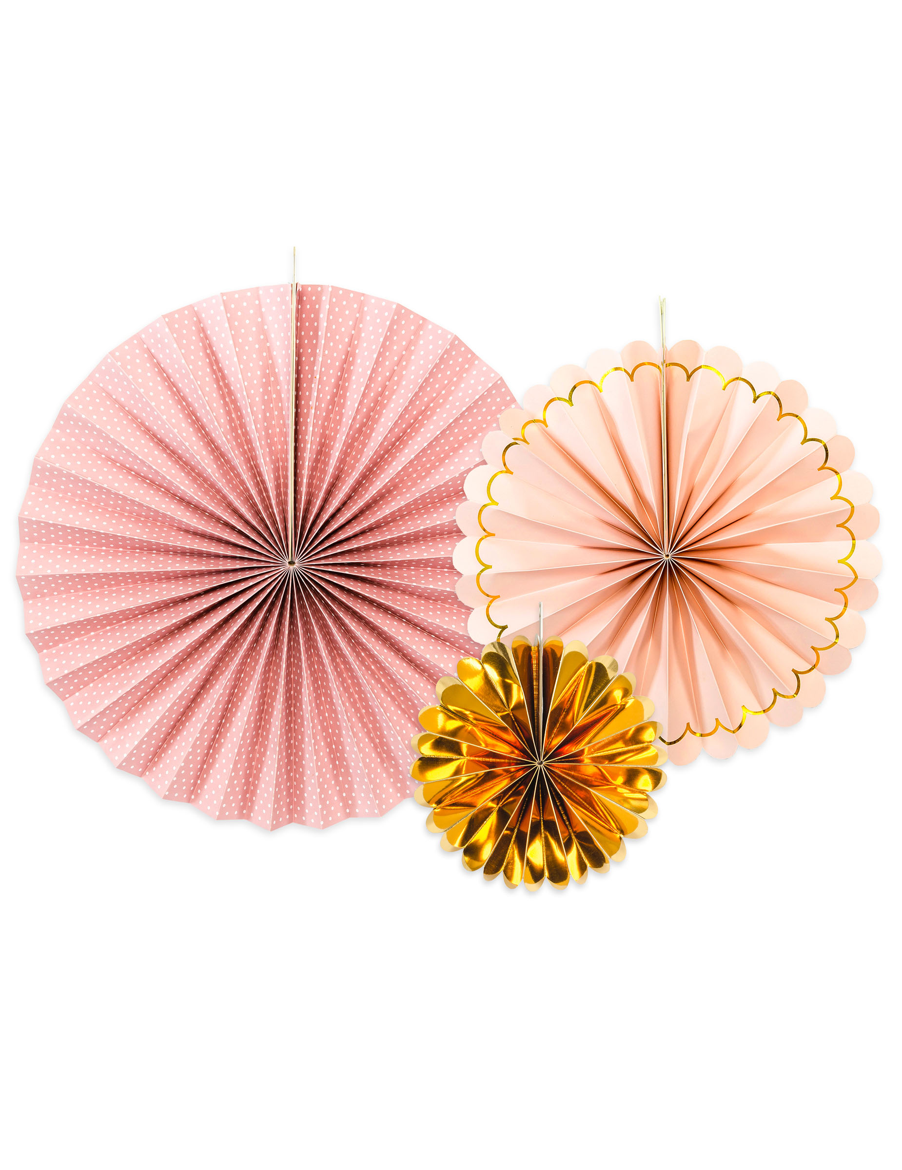 3 Rosaces en carton rose poudré et or 13,25 et 32 cm
