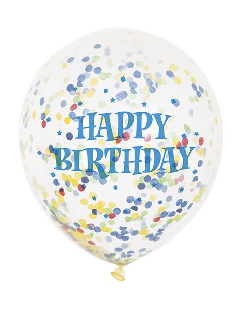 6 Ballons en latex transparent Happy Birthday 30 cm