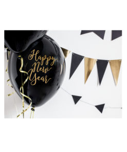 6 Ballons latex noirs Happy New Year doré 30 cm