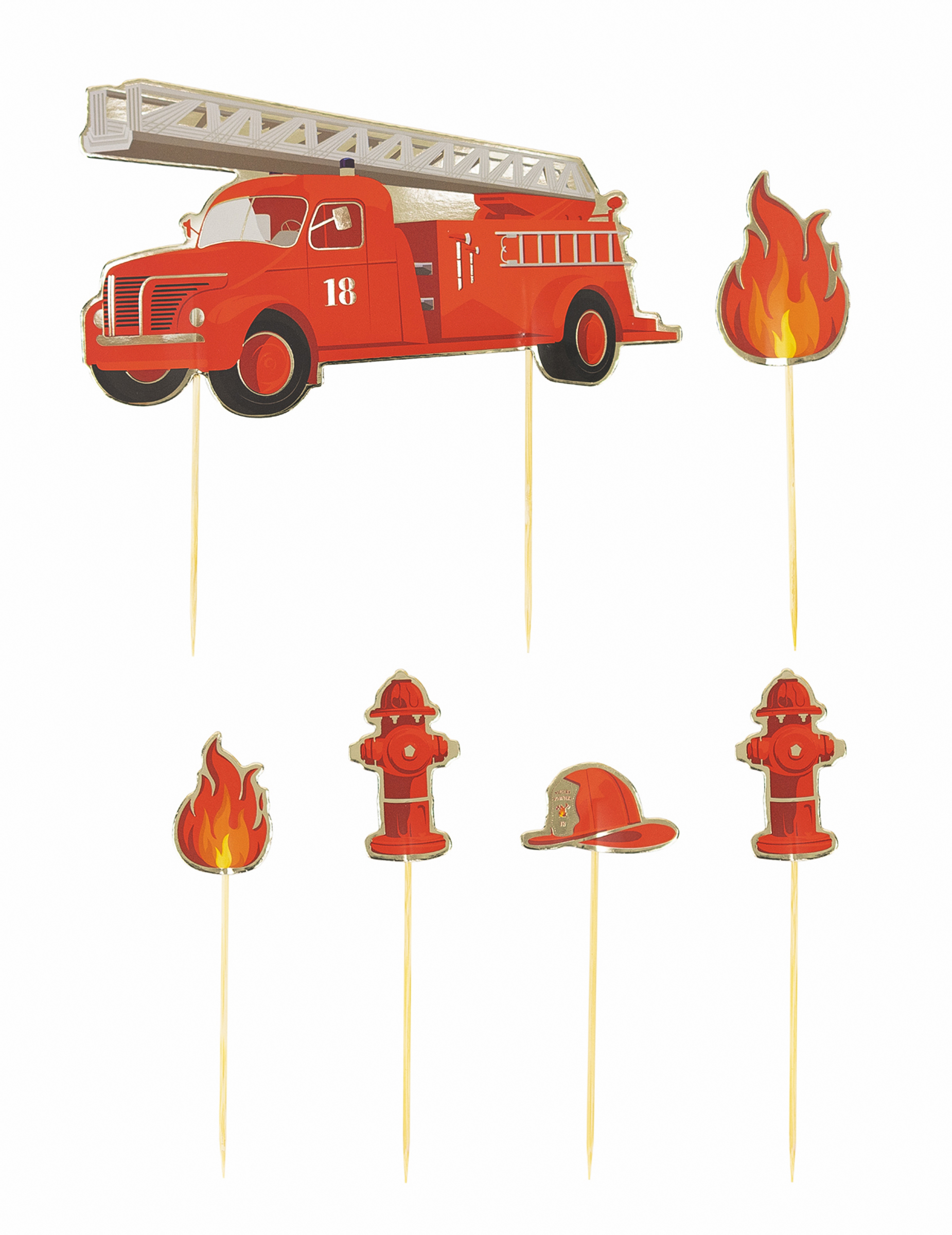 6 Décorations pour gâteau Pompier