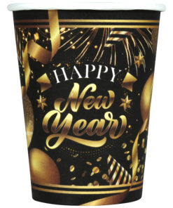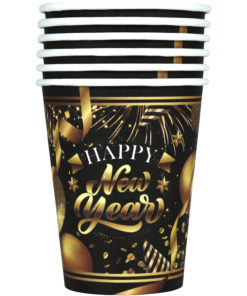 6 Gobelets en carton Happy new year noir et or 240 ml