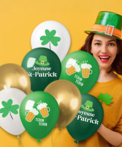 8 ballons imprimés trèfles et bières Saint Patrick