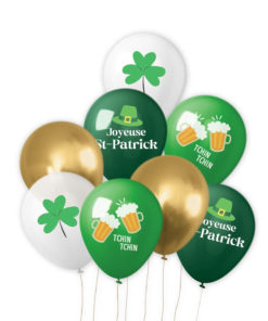 8 ballons imprimés trèfles et bières Saint Patrick