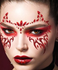 Bijoux pour visage adhésifs démon enflammé rouge