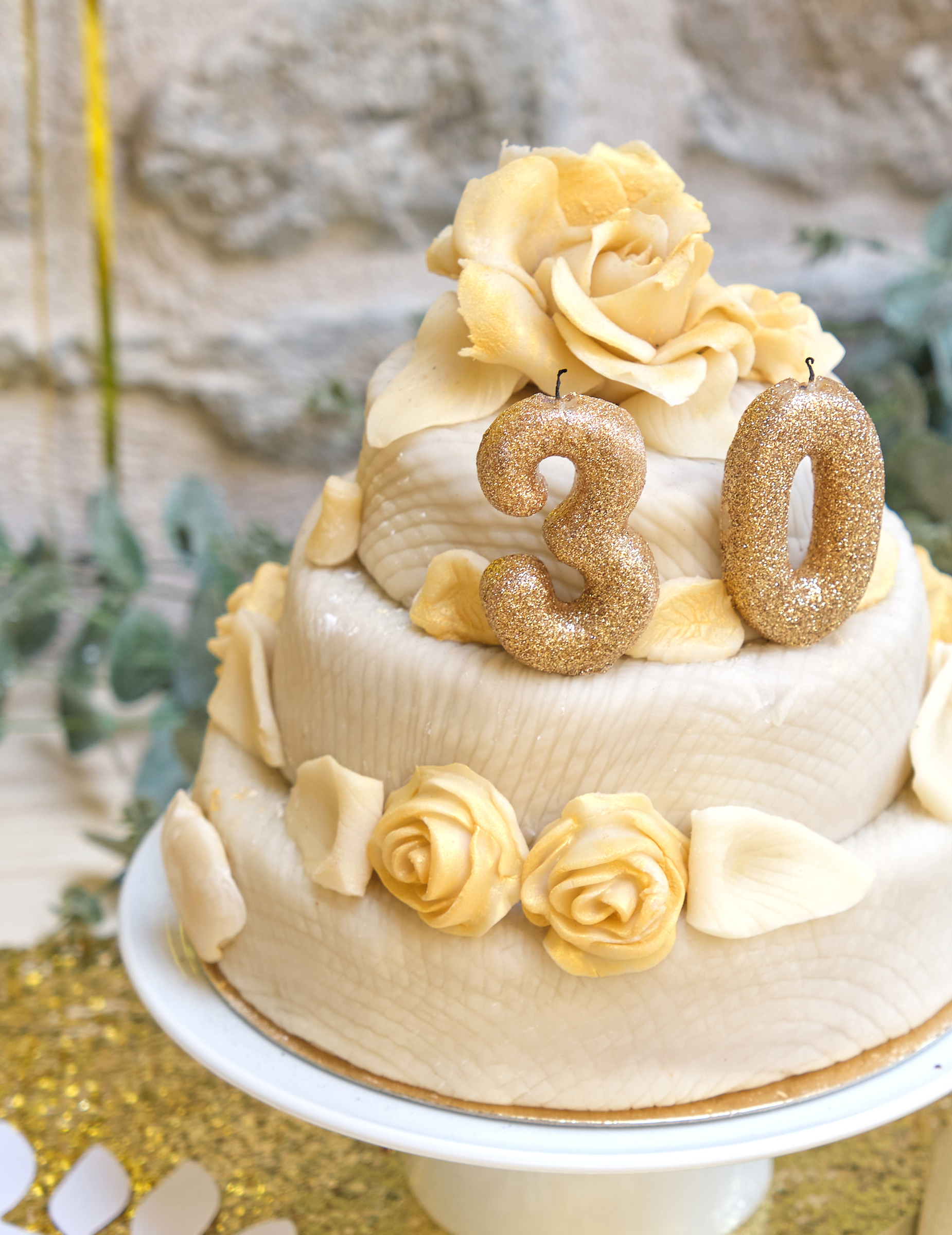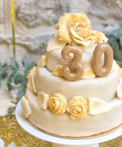 Bougie chiffre 0 doré à paillettes 9 cm