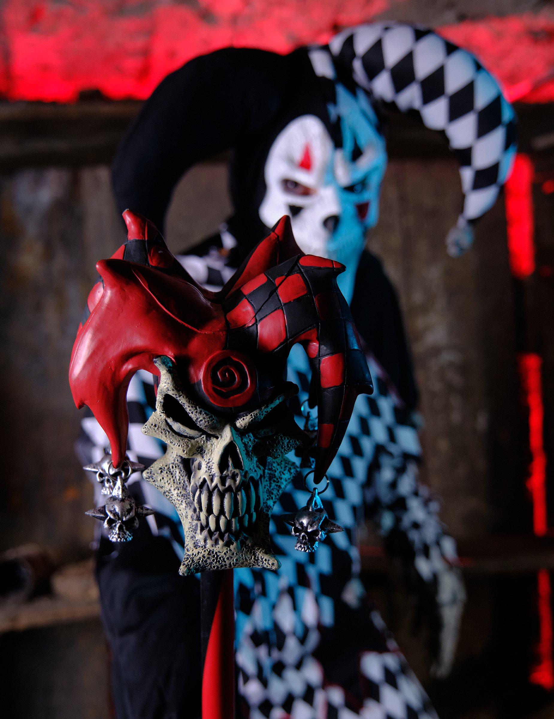 Canne du bouffon rouge et noire adulte