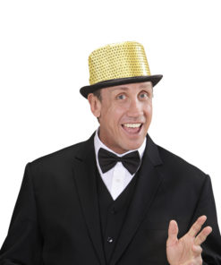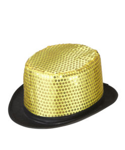 Chapeau haut de forme doré à sequins contour noir adulte