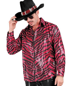 Chemise à sequins tigrée rose homme