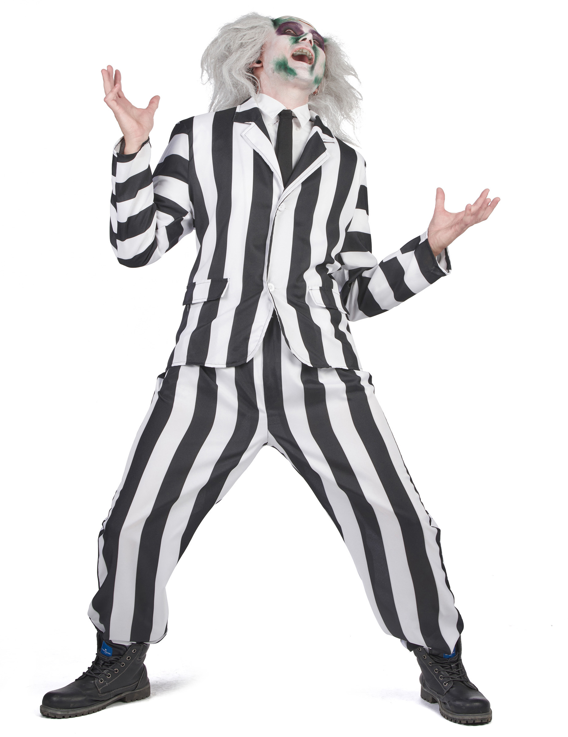 Costume de fantôme rayé noir et blanc adulte