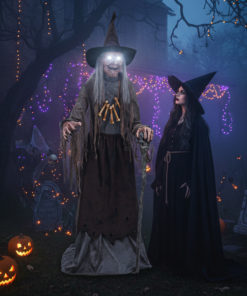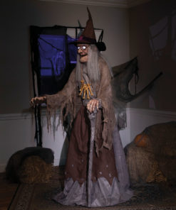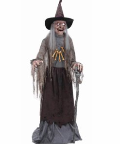 Décoration animée Sorcière Hideuse avec Bras Articulés Son et Lumières 1,75m