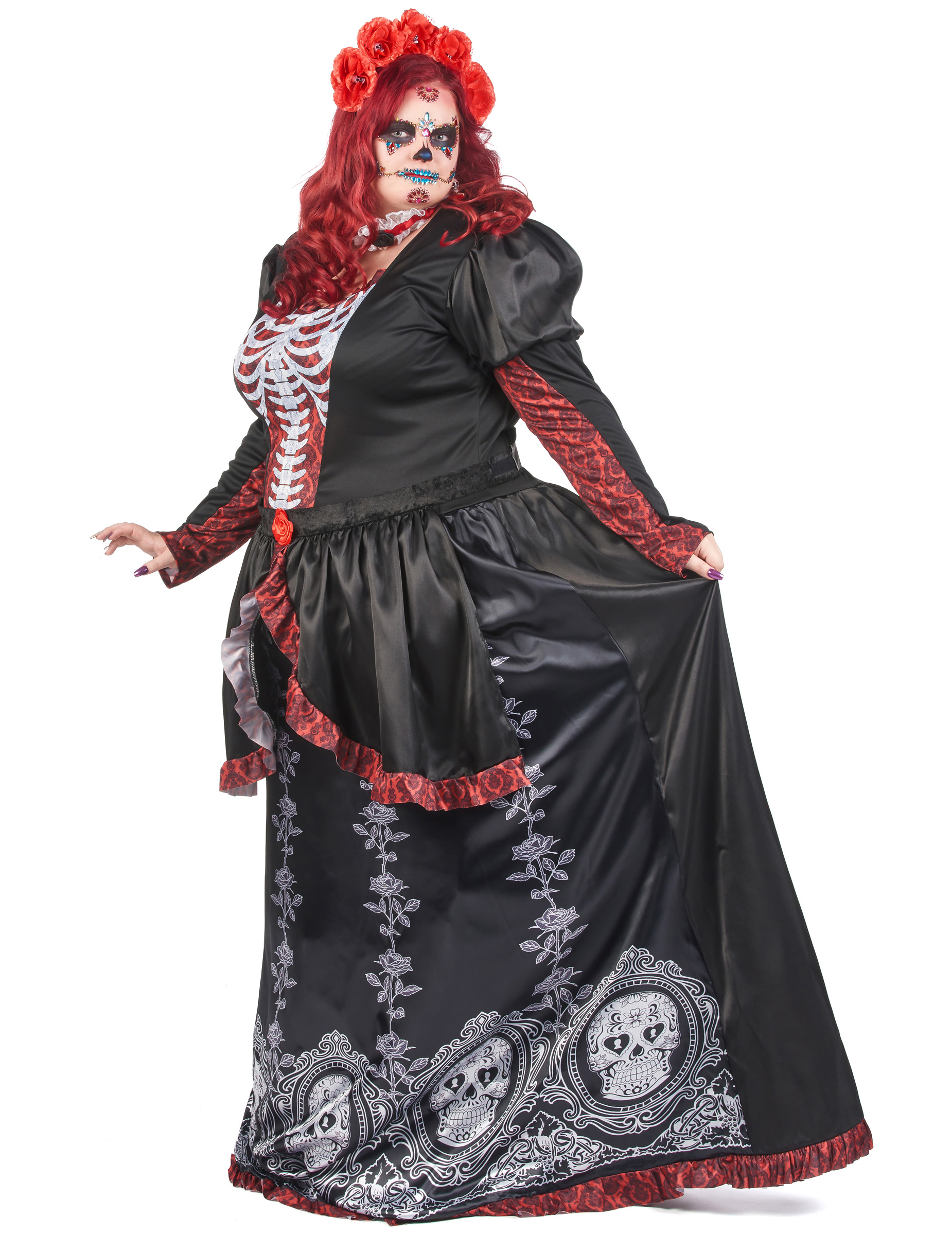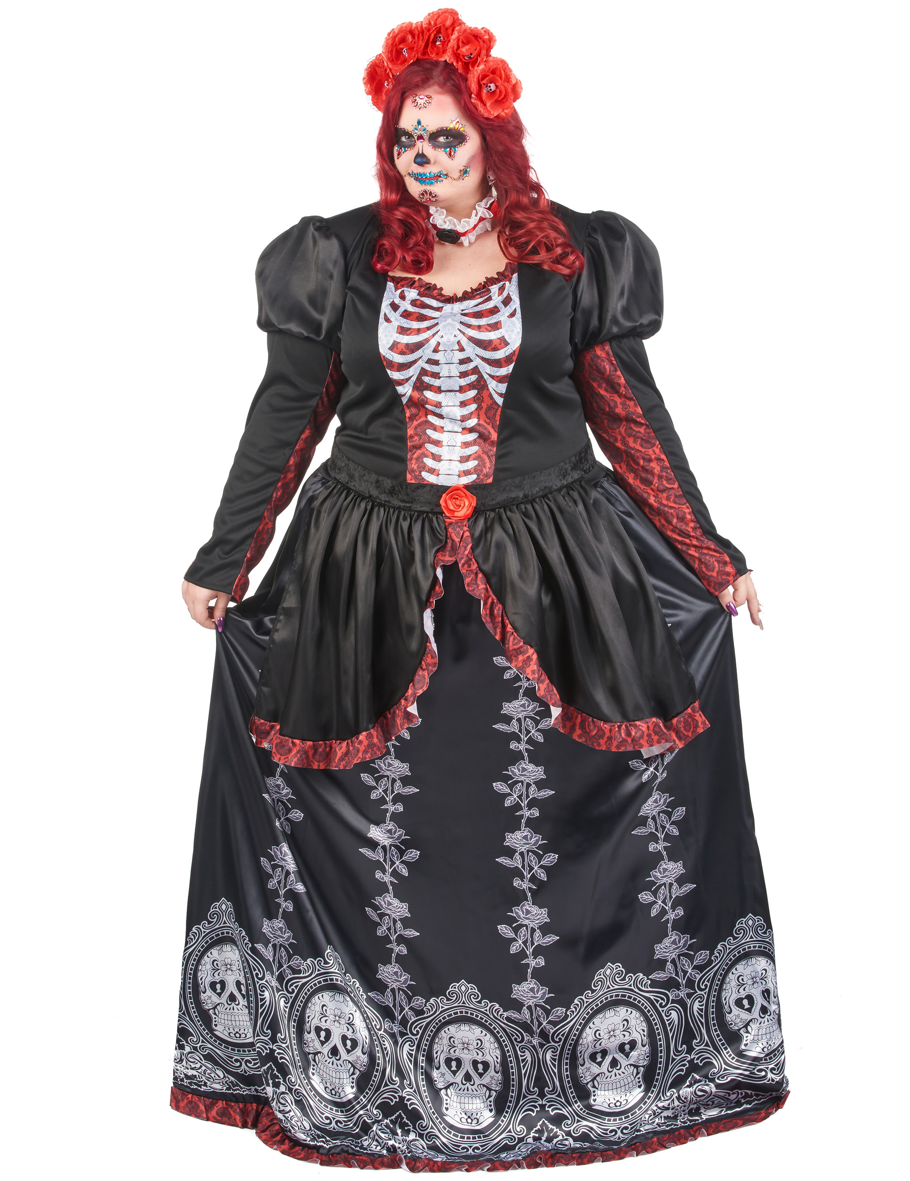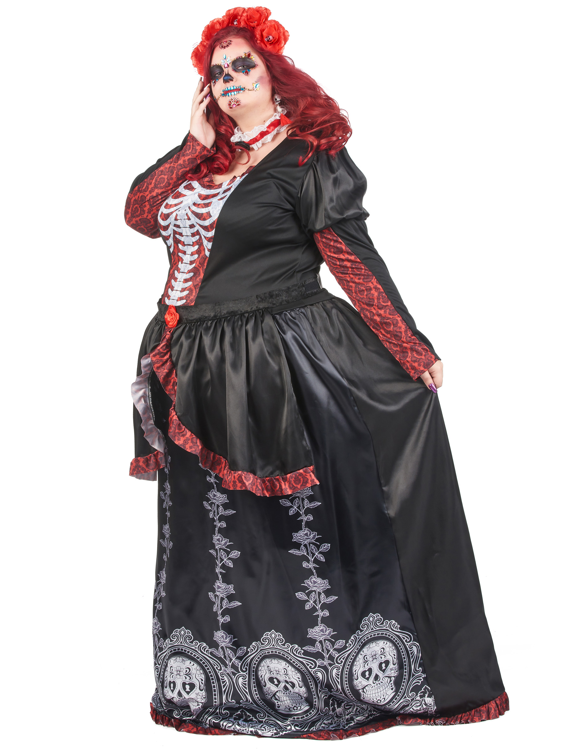 Déguisement grande taille robe longue Dia de los muertos femme