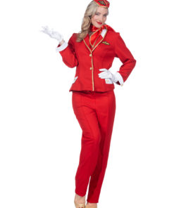 Déguisement hôtesse de l’air rouge luxe femme