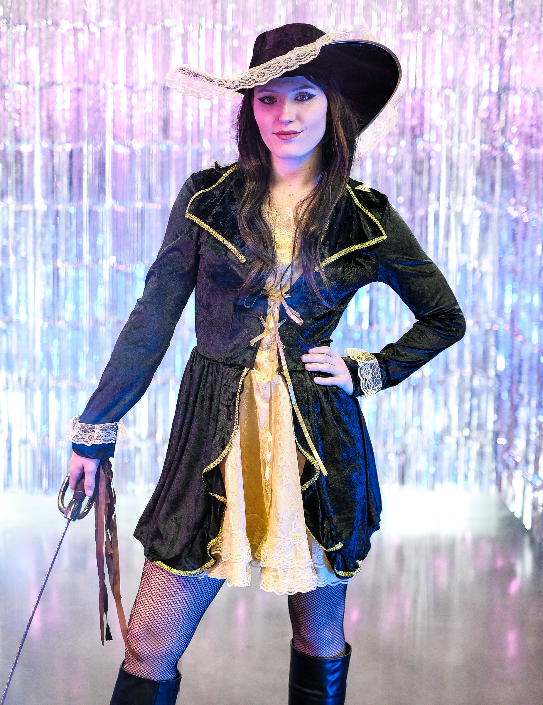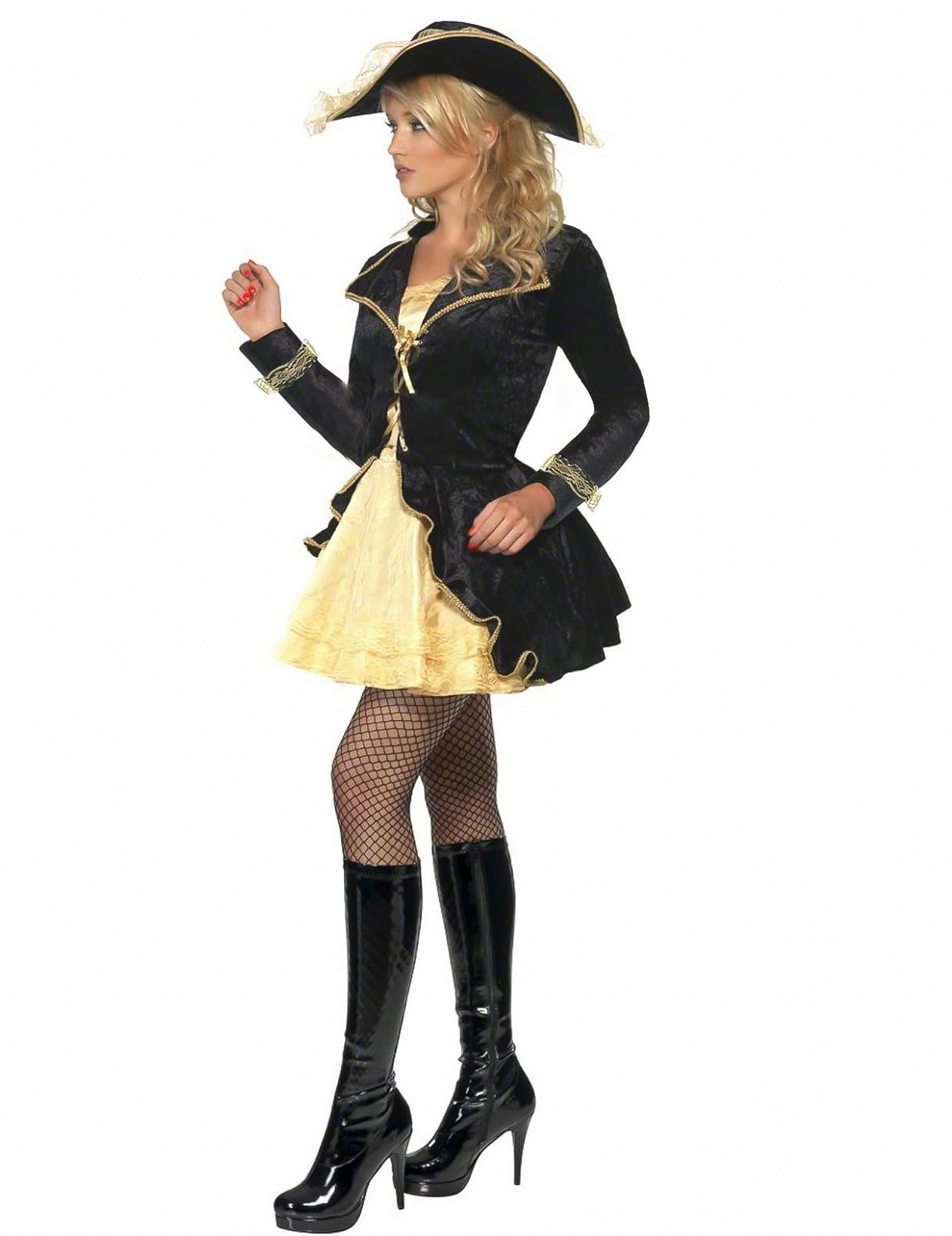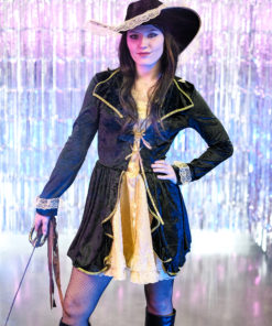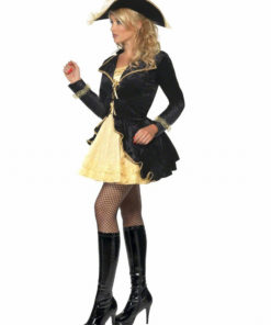 Déguisement pirate baroque noir et dorée femme