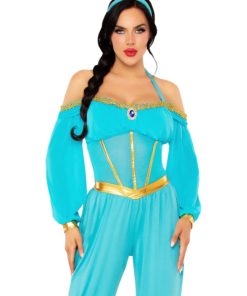 Déguisement princesse orientale bleue et or femme
