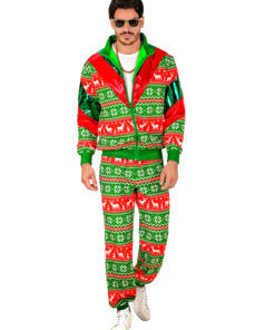 Déguisement survêtement de Noël vert et rouge adulte
