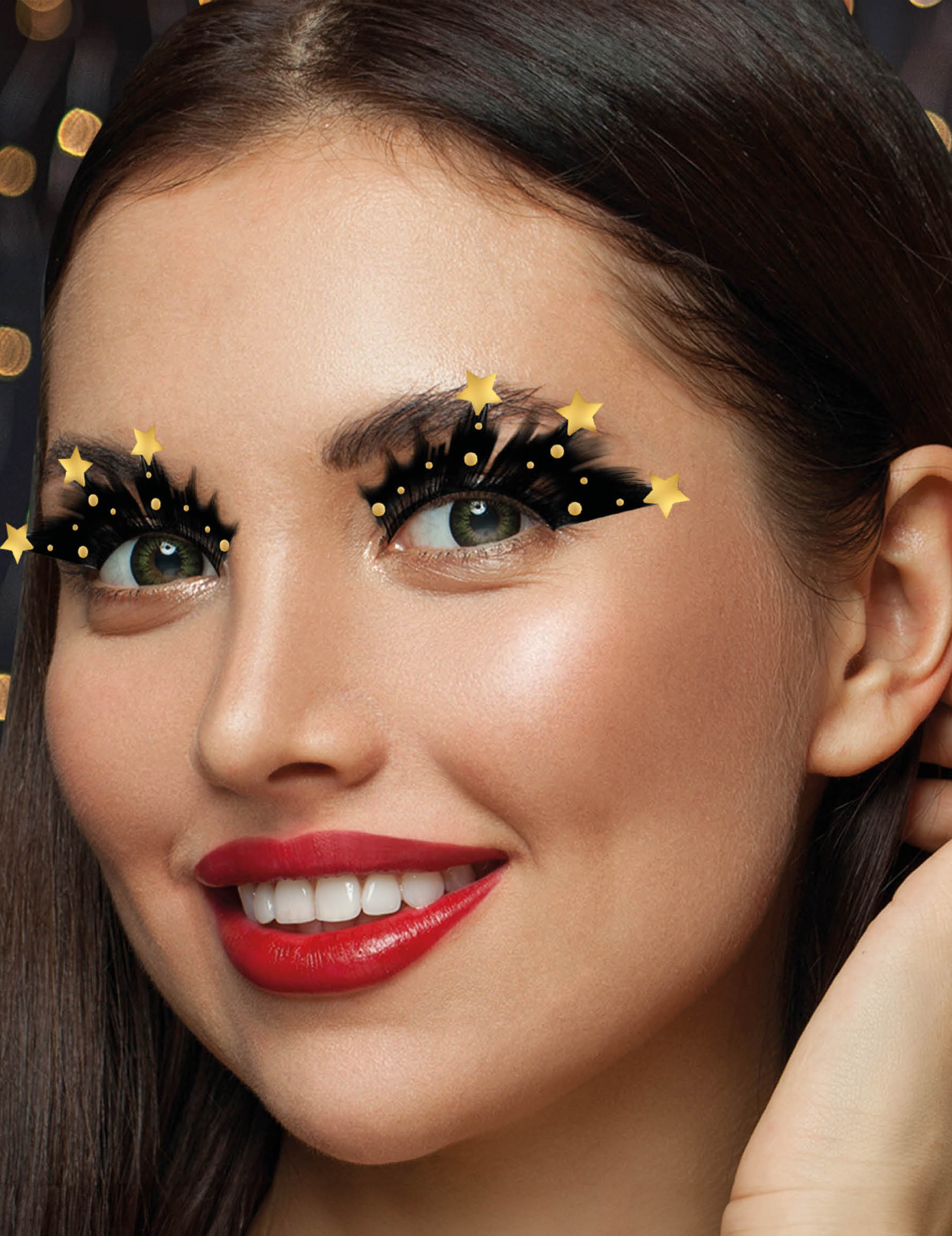 Faux-cils noirs avec étoiles dorées adulte