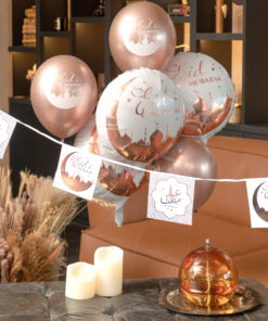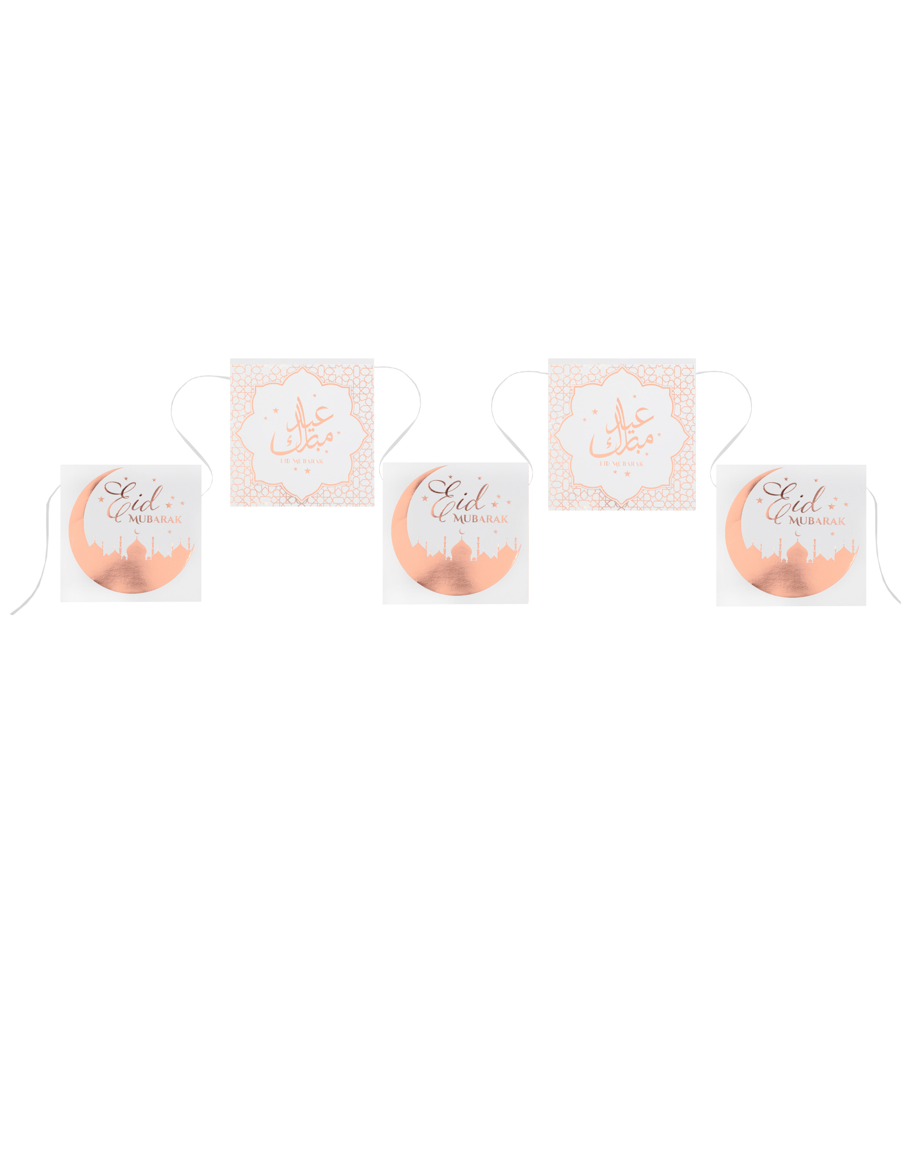 Guirlande 12 fanions en carton eid mubarak rose gold 5 m pour l’aïd