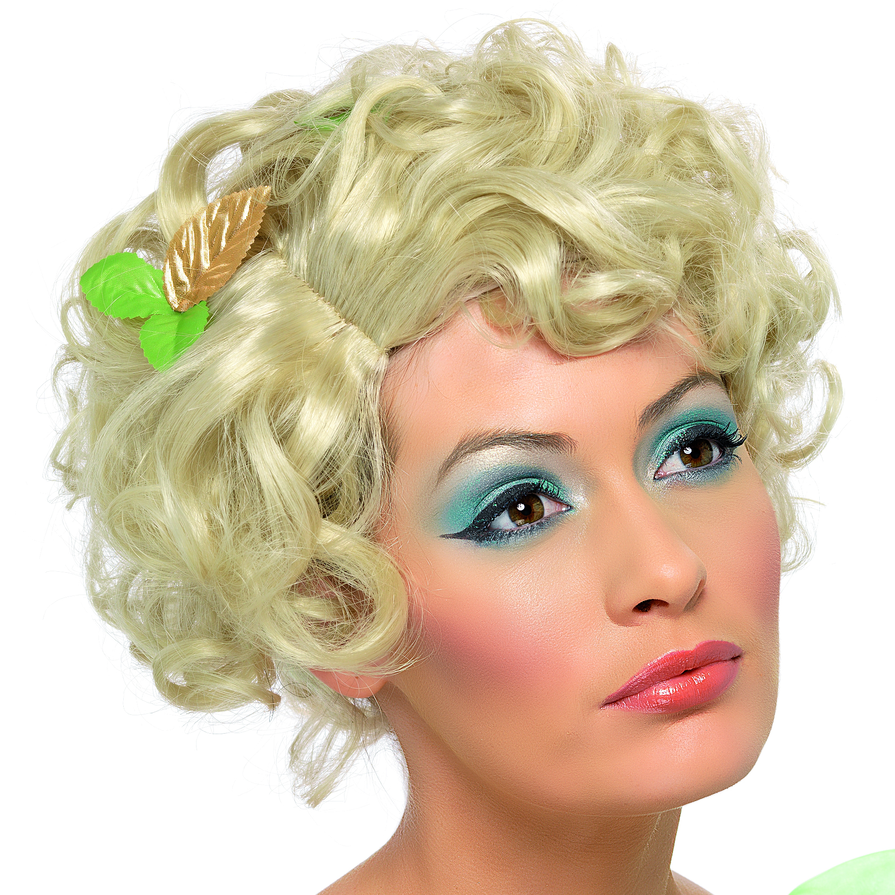 Perruque blonde courte bouclée accessoirisée femme