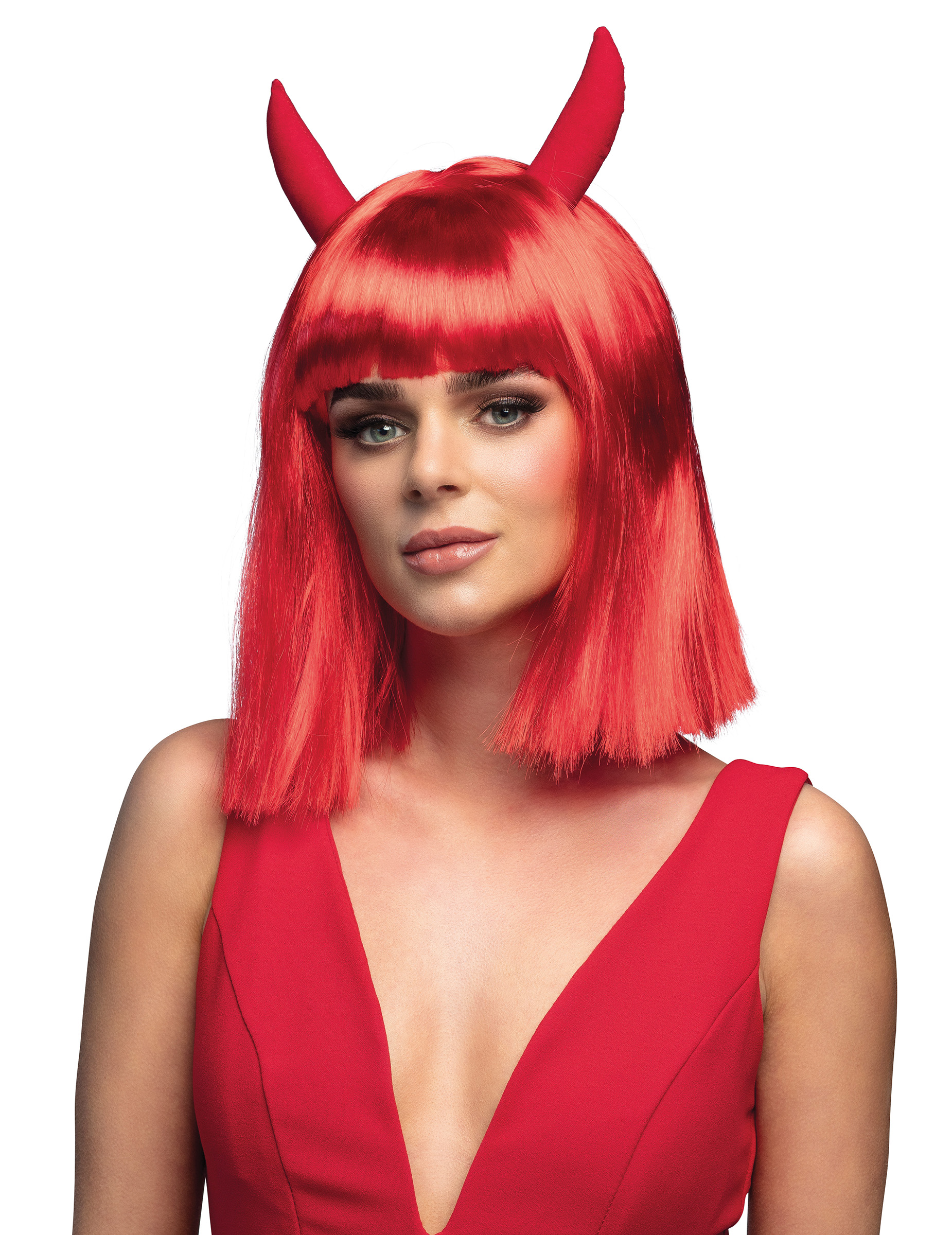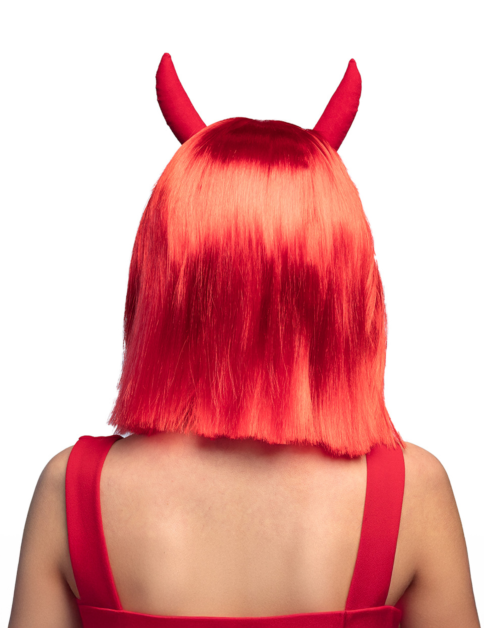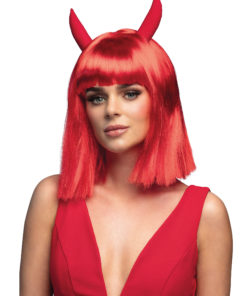 Perruque carré avec cornes de diablesse adulte