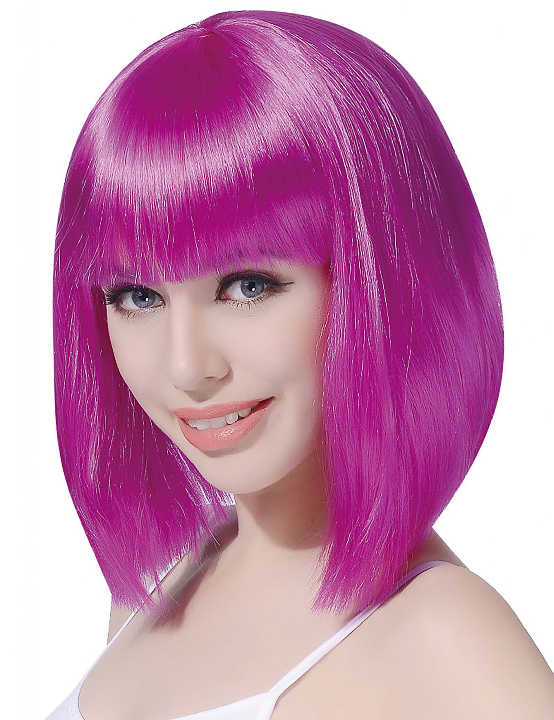 Perruque fuschia avec frange femme