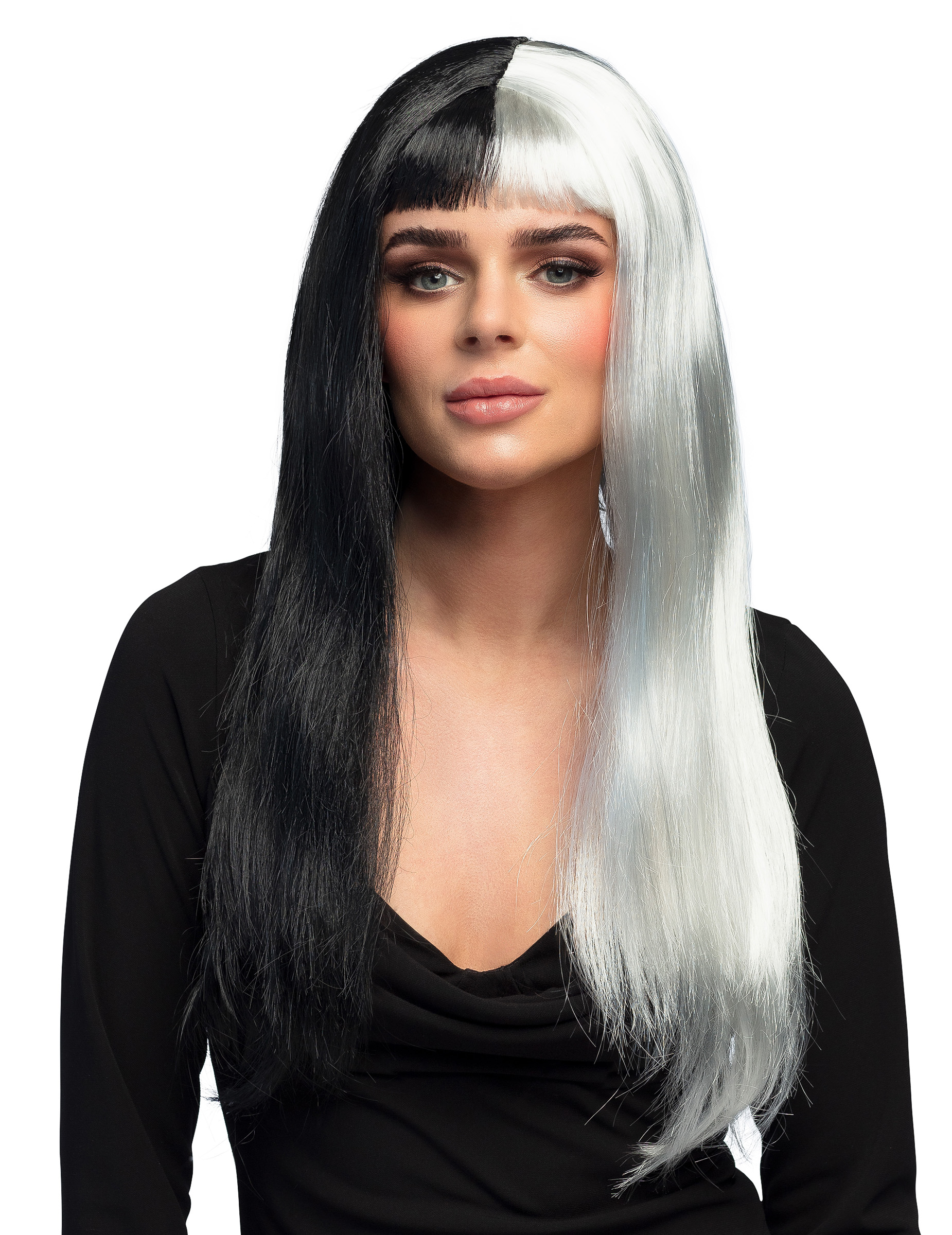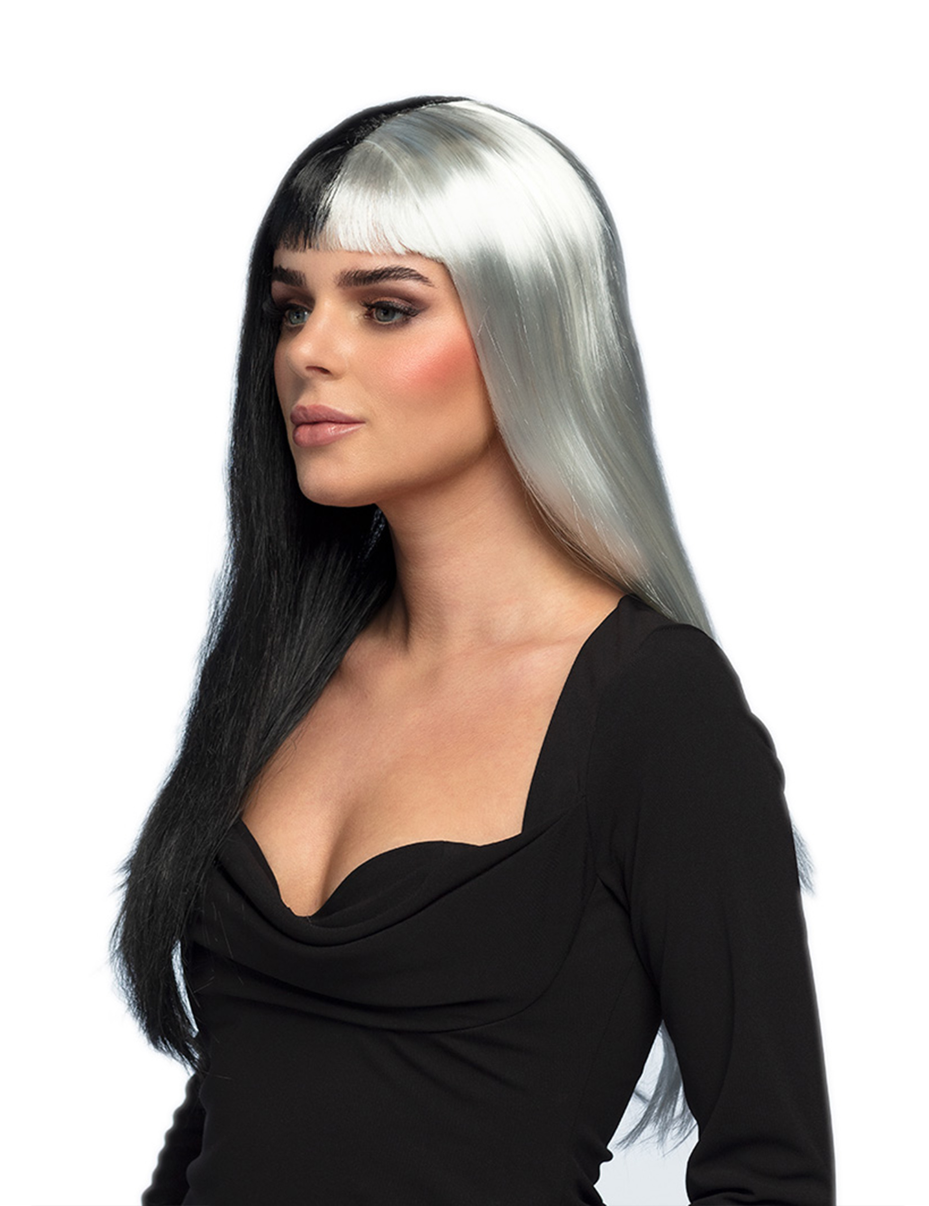 Perruque lisse noire et blanche femme