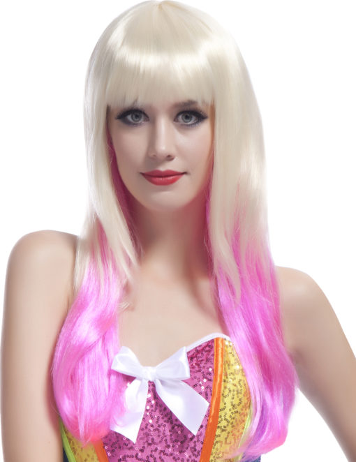 Perruque Tie & Dye blond et rose femme