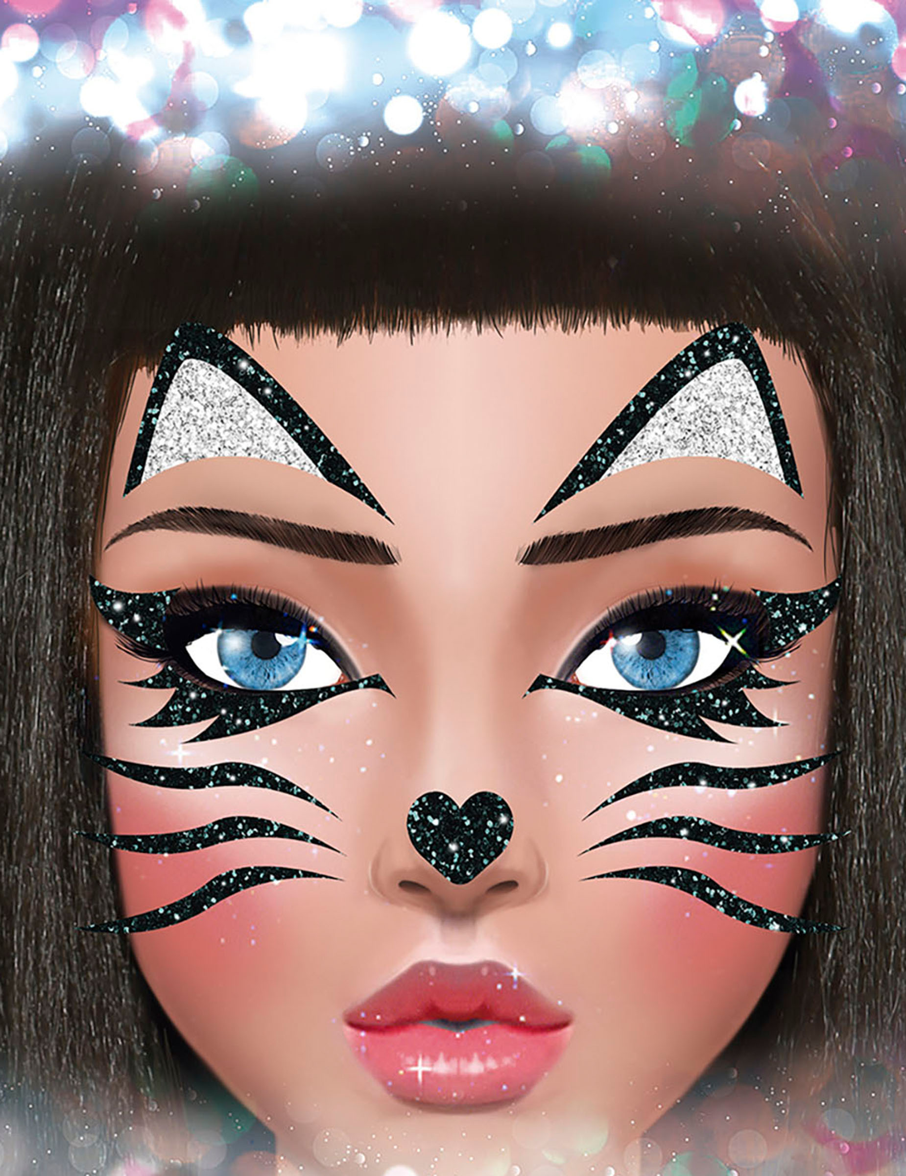 Tatouages pailletés chat noir et argent
