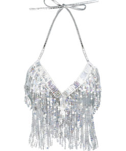 Top argenté avec franges et sequins femme