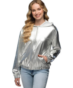 Veste à capuche argentée métallique adulte