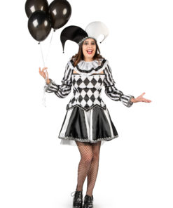Déguisement bouffon diabolique noir et blanc luxe femme