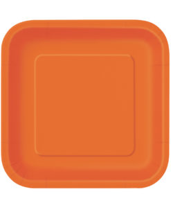 14 Assiettes carrées orange en carton 23 cm