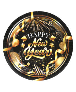 6 Assiettes en carton Happy new year noir et or 23 cm
